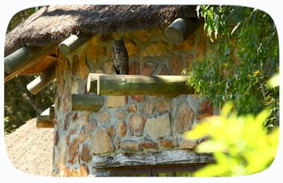 Viewing an owl close up is truly a remarkable experience. The one above made a nest under the thatchroof awning for awhile. |